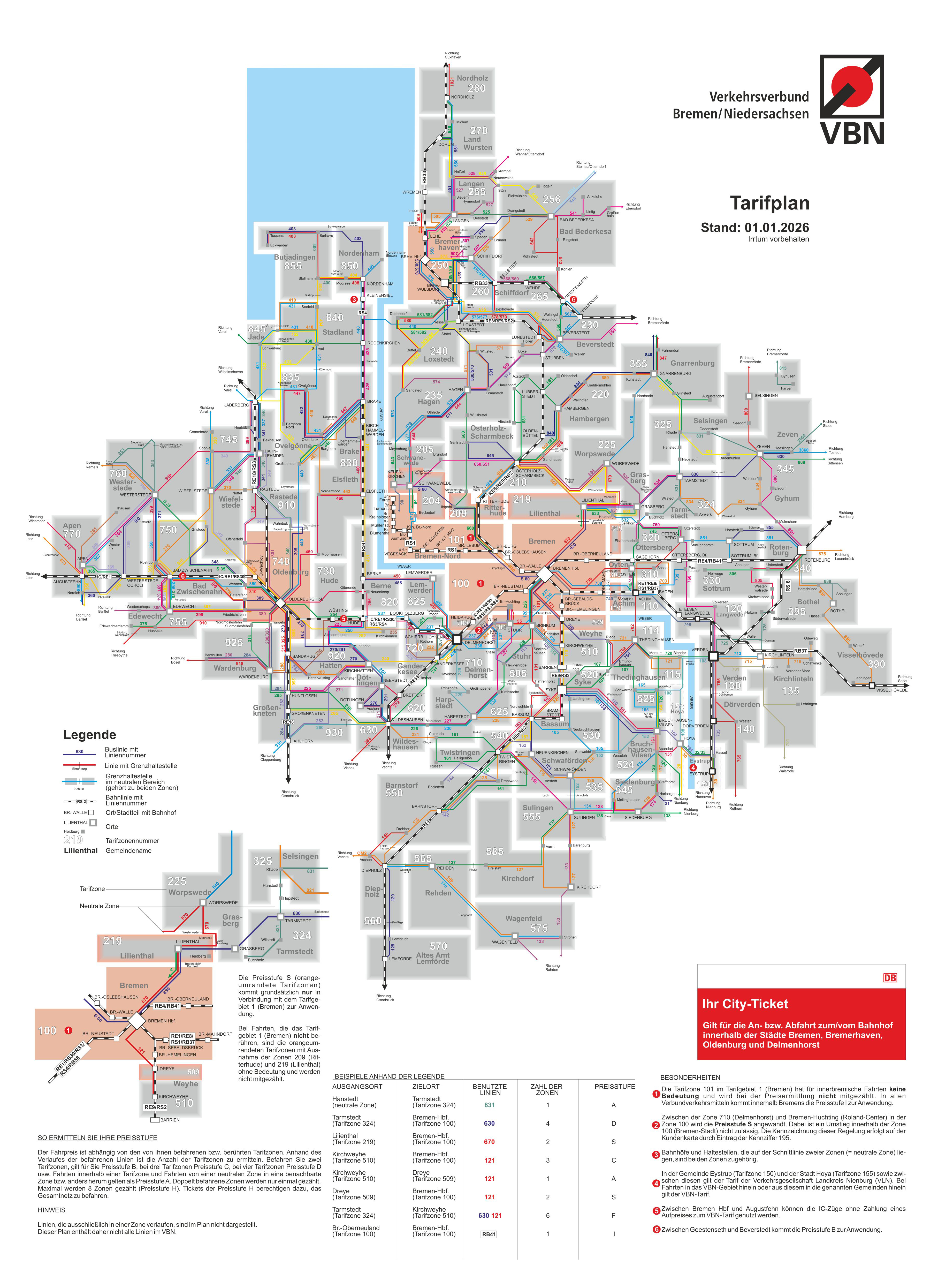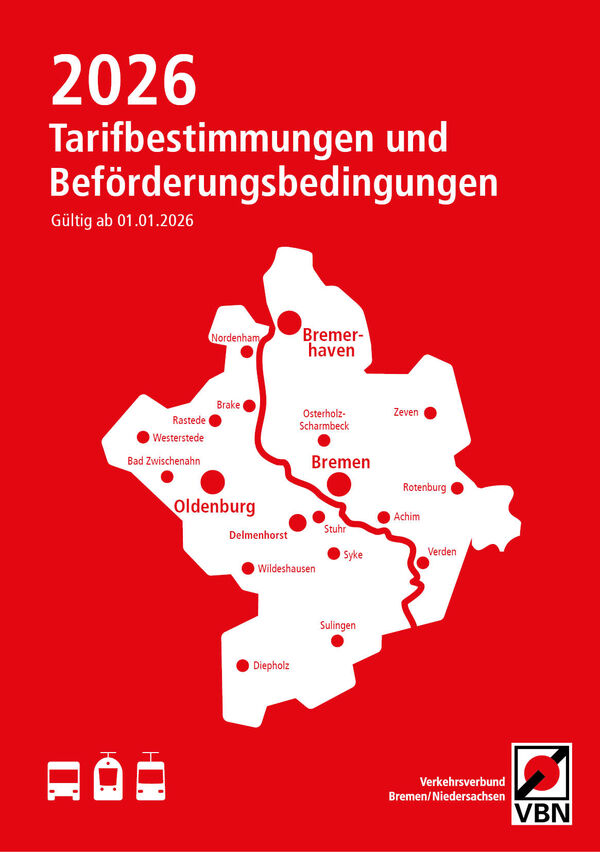 Jede Fahrt ist anders. Verschieden sind zum Beispiel die Fahrtroute oder die Wahl der Verkehrsträger. Der Tarifplan informiert über die Anzahl der Zonen und die entsprechende Preisstufe. Die AGB zu Allgemeinen Geschäftsbedingungen. Die Tarifbestimmungen und Beförderungsbedingungen über sämtliche Details darüber hinaus: Ticket- und Tarifvielfalt sowie alle Bestimmungen zur Beförderung der Menschen, Tiere oder Sachen im VBN-Land.